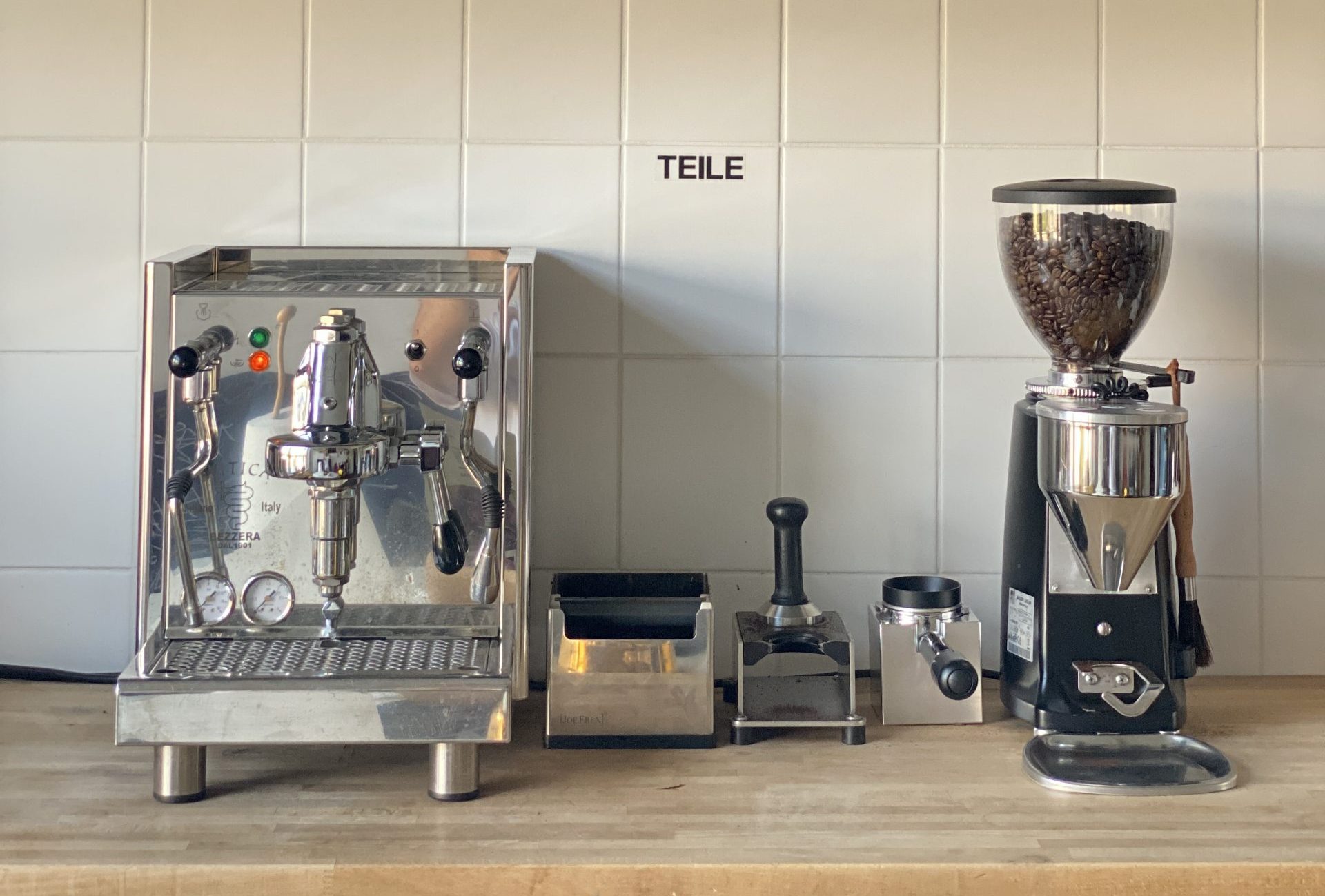 Wir haben zwei verschiedene hochwertige Kaffeesorten, Mühlen und eine Siebträgermaschine. Dazu Kuhmilch und verschiedene Milchalternativen. Auch Softdrinks sind für dich inklusive.